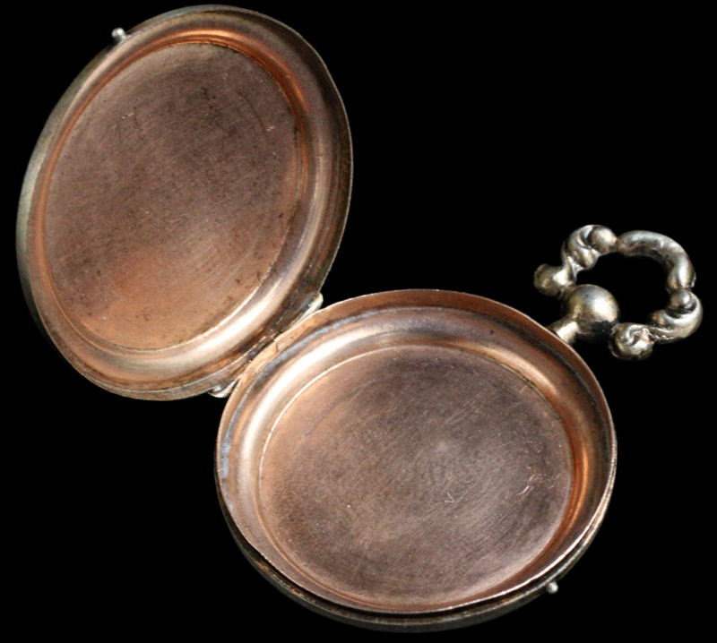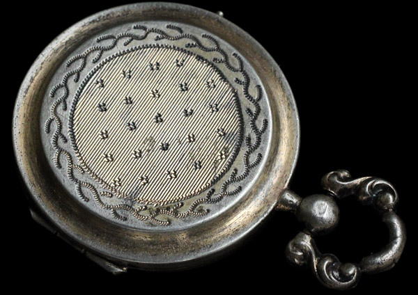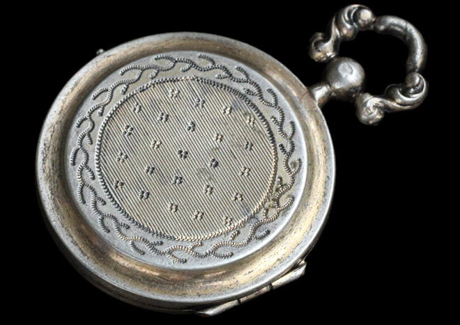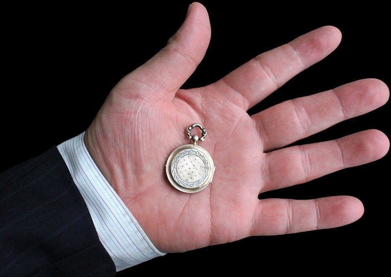 19世紀の鍵巻式懐中時計と同様の意匠によるメダイヨン(ロケット)。円形部分の直径は 26.9ミリメートルで、五百円硬貨とほぼ同じ大きさです。