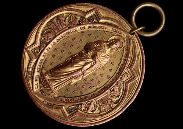 (下・参考画像) リュドヴィク・ペナン作 美術メダイユ 「我が肉を食し我が血を飲む人は永遠の生命を有す、而して我、終の日に之を復活せしむべし」 直径