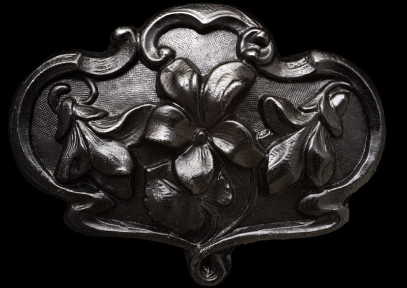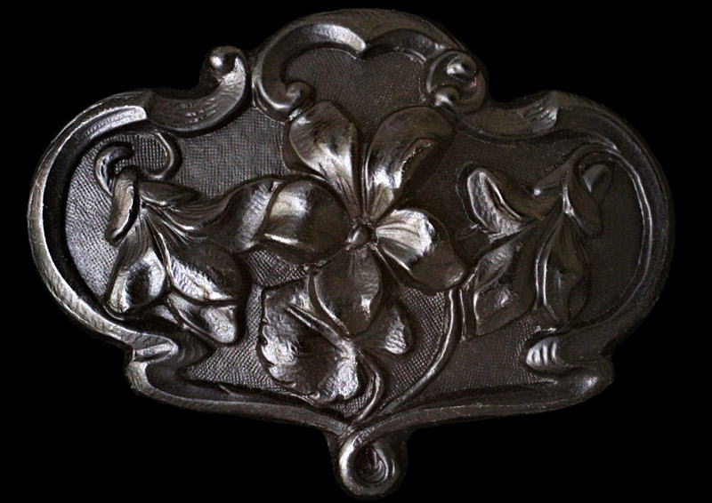 19世紀末であり、イギリス本国において、黒いジュエリーはそれ以前に廃れていました。本品はフランスで制作されたものであるゆえに、ジェ・ド・パリ(漆黒のガラス)とアール・ヌーヴォーが同居しているのです。