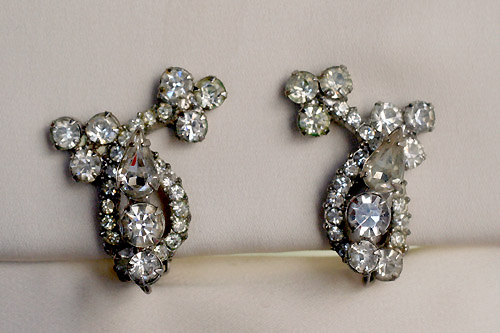 アメリカ製ヴィンテージ 無色のラインストーンのクリップ式イアリング #3