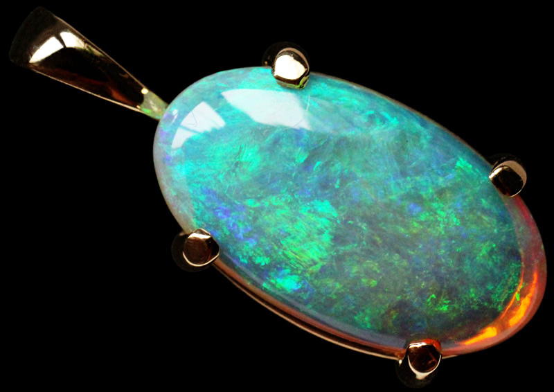 本品はイエロー・ゴールドの枠を付けてペンダントにしました。本品から製作したペンダントの詳細を見るには、このリンクをクリックしてください。