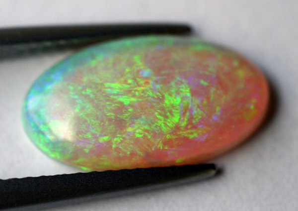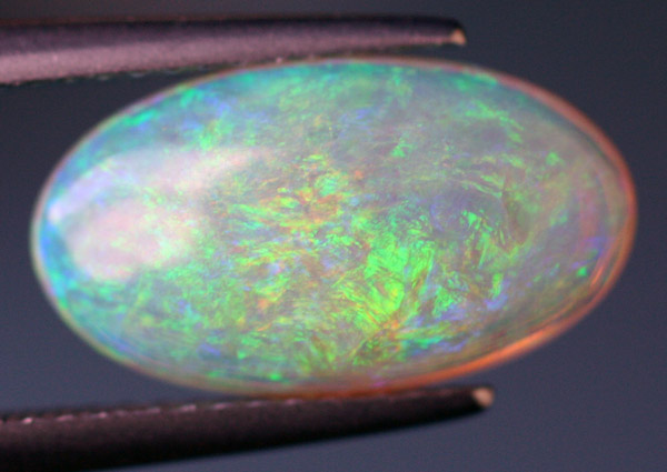 オーストラリア産 《最高級ホワイト・オパール 2.54 カラット》 ブルーとグリーンの遊色を呈する逸品 14.9 x 8.4 ミリメートル