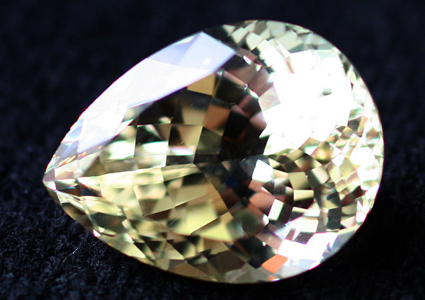 スポジュメンはコランダムやベリルと並んで最も強く輝く宝石ですが、このイエロー・スポジュメンも強烈な光を放っています。輝きがあまりにも強いせいで写真撮影が難しく、色が正確に再現できませんでした。実物は商品写真よりもずっと美しいレモン・イエローです。