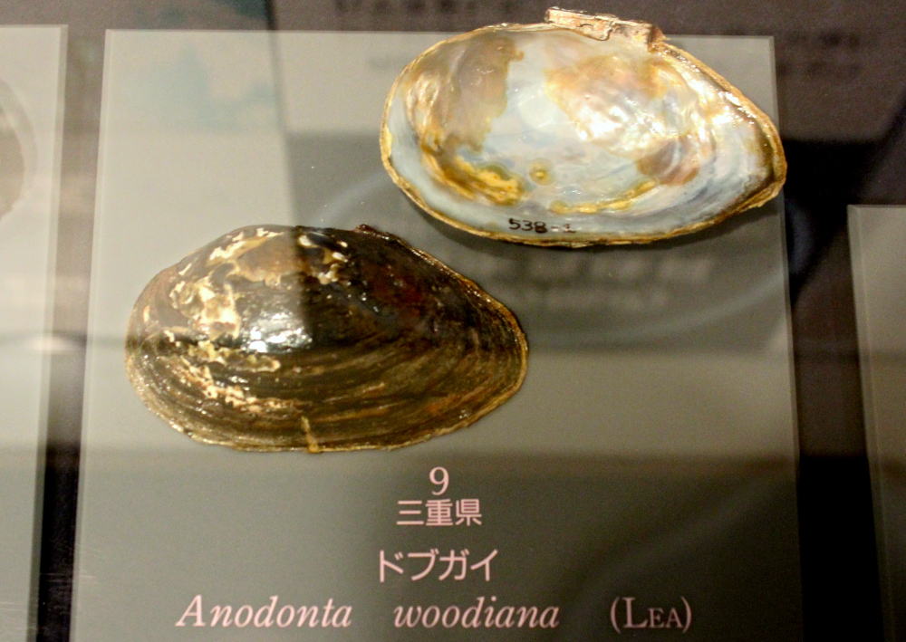 イケチョウガイ(Hyriopsis schlegelii)は元々琵琶湖淀川水系の二枚貝で、イシガイ目イシガイ科に属します。いずれもウグイスガイ目ウグイスガイ科に属するクロチョウガイ、シロチョウガイとは類縁関係が遠い(註1)ですが、美しい真珠を産するという実用上の共通点に基づいて、このような和名が付けられています。