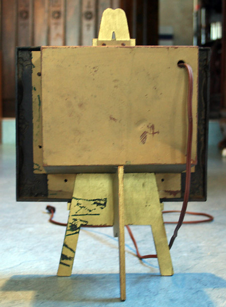 時計を前傾気味に展示できるようになっています。箱の内側にはおそらくベルベットが張ってあったはずです。張りなおせばいっそう高級感が出ます。昼間に見てもおもしろいデザインのディスプレイですが、夜に点灯すると時計に吸い込まれそうな幻想的な美しさを見せてくれます。