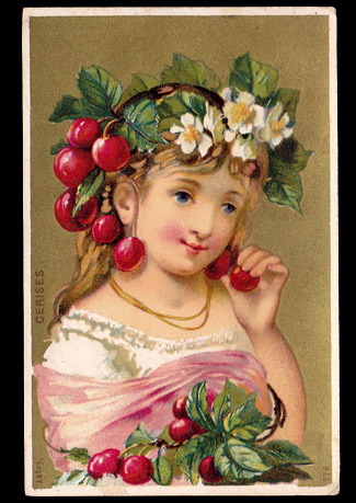 画面の向かって左端には「さくらんぼ」(cerises) と書かれています。また画面左下には、パリ中心部のドーフィーヌ通り16番地にあったリトグラフの版元、オブリ