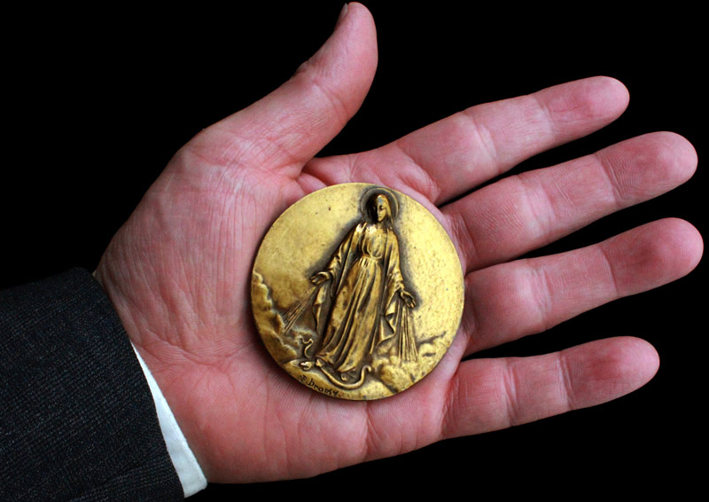 ジャン=バティスト・エミール・ドロプシ作 無原罪の御宿り 蛇を踏み付ける勝利の聖母 ブロンズ製メダイユ