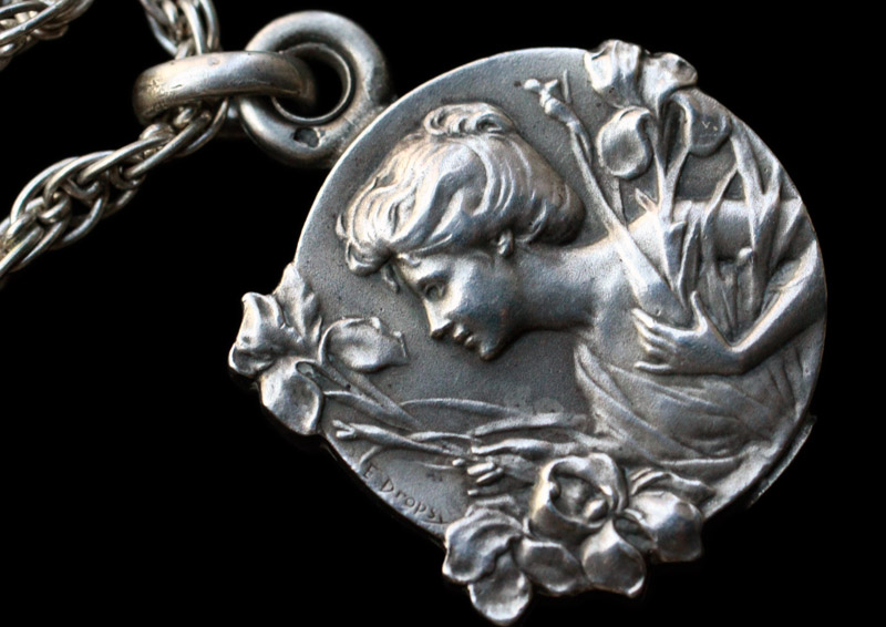 Dropsy, 1848 - 1923) による美麗なメダイヨン(ロケット)。典雅なアール・ヌーヴォー様式に基づき、800シルバーで制作した銀無垢の高級品で、フランスにおいて800シルバー(純度