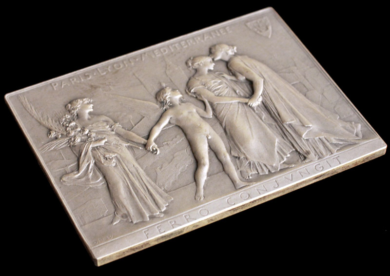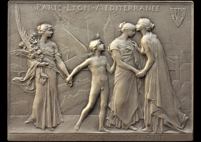 ルイ・オスカル・ロティ作 アール・ヌーヴォーのプラケット 「鉄路は結ぶ」 パリ・リヨン・地中海鉄道