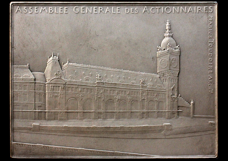 画面上部には「株主総会」(Assemblée Generale des Actionnaires) の文字が見えます。このプラケットは 1901年4月の総会に出席した株主に授与されたものです。