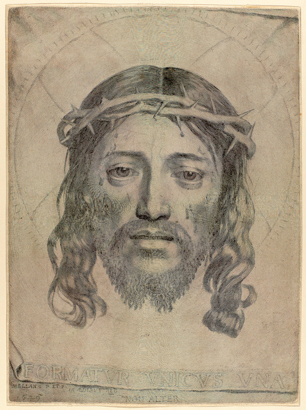 ヴェロニカの布(きぬ)」で、メランは右手にビュランを持って力を正確にコントロールしつつ、左手で銅板を反時計回りに回転させ、キリストの鼻の頭を起点とする一本の渦巻き線でヴェロニカの布全体を描いています。「ヴェロニカの布」の原版は、ブリュッセルのベルギー王立文書館に収蔵されています。