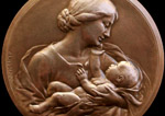 秀作 フィルマン・ピエール・ラセール作 ブロンズ製美術メダイユ 「幼子に微笑みかける若き母」 フランス 1968年