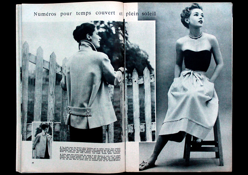 「カイエ・ド・エル」創刊号は、「エル」 340号(1952年7, 8月合併号)の別冊です。一冊まるごとヴァカンス特集になっており、ヴァカンス前の準備、行き先のヒント、避暑地・保養地でのファッション、水着など多彩な内容が取り上げられています。