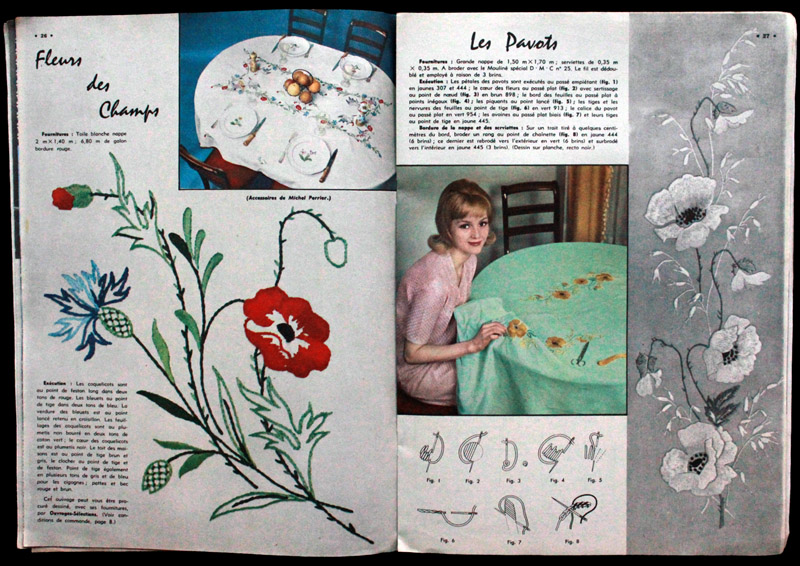 「モヌヴラージュ・マダム」は、フランス、ベルギー、スイスで発売されていた月刊の手芸雑誌です。1960年6月号では夏の子供服、父の日特集、イギリス刺繍などが紹介されています。付録として付いている刺繍の型紙は広げると