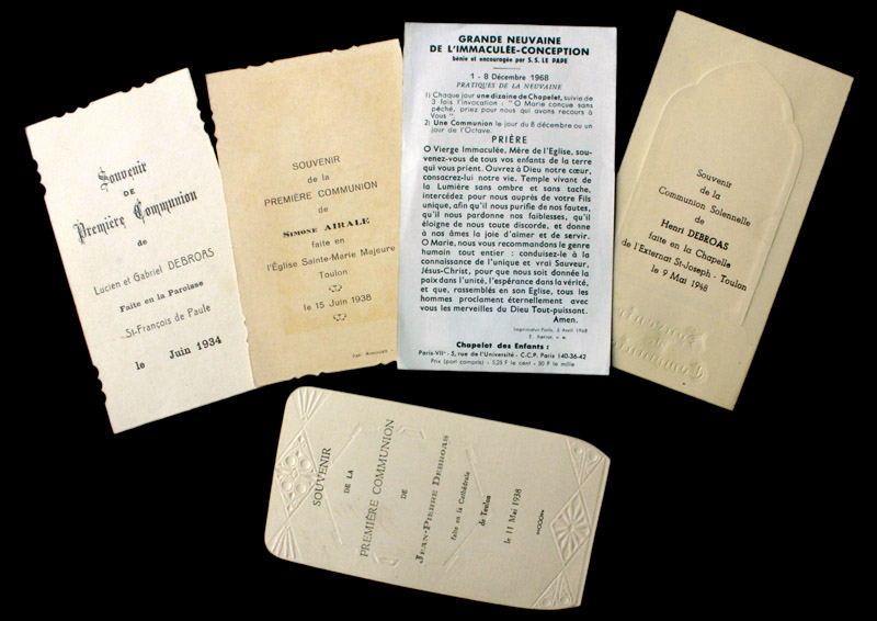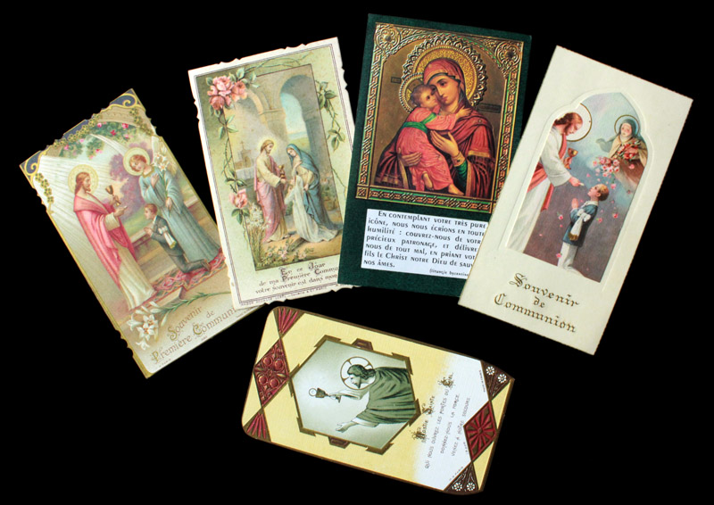 この祈祷書には、四人の子供の初聖体を記念する小聖画が付属しています。小聖画の年代は1934年から1948年です。