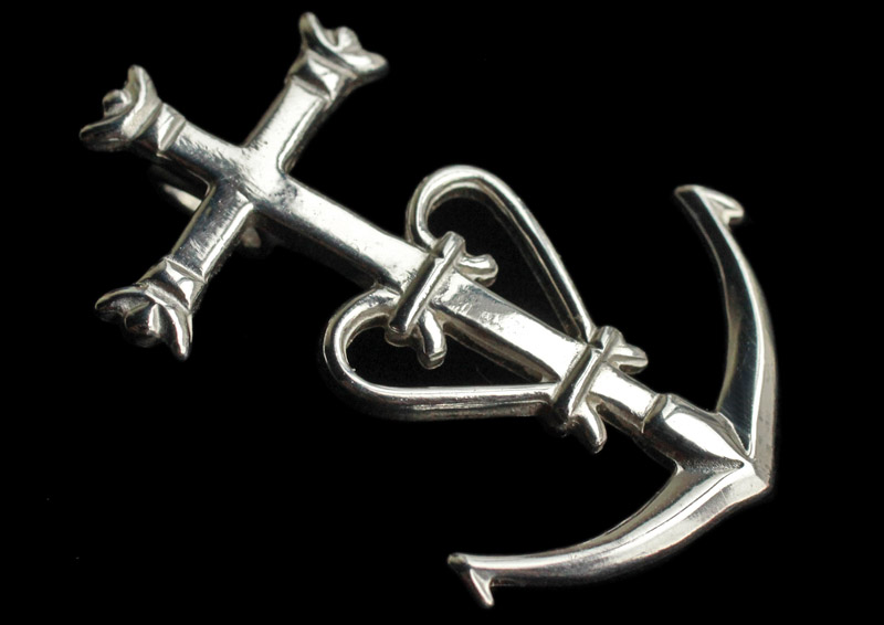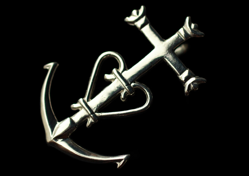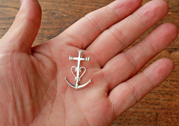 信仰を表す十字架、希望を表す錨、愛を表すハートを組み合わせた南仏カマルグのシンボル、クロワ・カマルゲーズ(カマルグ十字)。縦 30ミリメートル、横 21ミリメートルと大きなサイズで、細部まで丁寧に作った美麗な品物です。クロス、メダイ等の素材として最も高級な 925シルバー(純度92.5パーセントのスターリング・シルバー)できており、手に取ると心地よい重みを感じます。