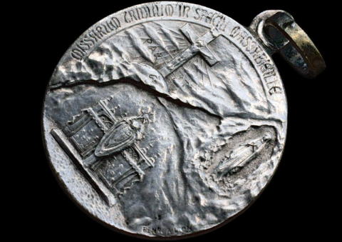 稀少品 アドルフ・ペナン作 「教皇ピウス11世とルルドの聖母」 贖いの聖年 大きめサイズのメダイ 直径 22.0 mm 1935年