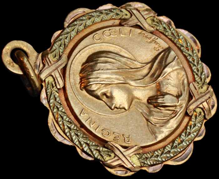 O. リュフォニー作 天の元后 レジナ・チェリ 金無垢ペンダント フランス製アンティーク 28.0 x 23.7 mm
