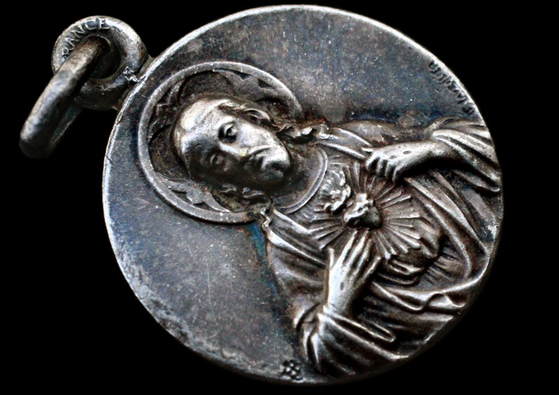 およそ百年前のフランスで制作されたスカプラリオのメダイ。いずれの面にも非常に精緻な浮き彫りが施され、美しい古色に被われています。
