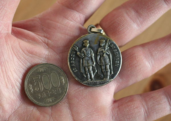 254年に殉教したと伝えられるペルシア人の兄弟、聖アブドンと聖セナンのメダイ。メダイはブロンズまたは真鍮に銀メッキを施しています。比較的大型で厚みもあり、手に取ると心地よい重みを感じます。
