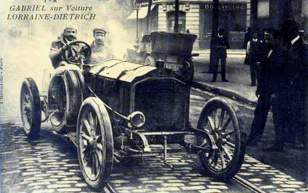 当時のスポーツ・カーは百数十馬力のエンジンを積んでいましたが、現代のスポーツ・カー、レーシング・カーよりもずっと狭いタイヤ幅でした。メダイに彫られている道は未舗装ですし、特に山道であれば思いがけない急カーブが多いですから、筆者(広川)が隣に女性を乗せるのであれば、このような状況ではスピードを控えます。しかしながらメダイの運転者はスピードを緩めず、スリルを楽しんでいるようです。