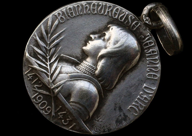 ジャンヌはリジューのテレーズやルイ9世、トゥールのマルタンと並ぶ「フランスの守護聖人」(une patronne secondaire) であるゆえに、フランスではこれまでに数々の美しいメダイが作られてきました。しかしながらジャンヌが正式に「フランスの守護聖人」とされたのは