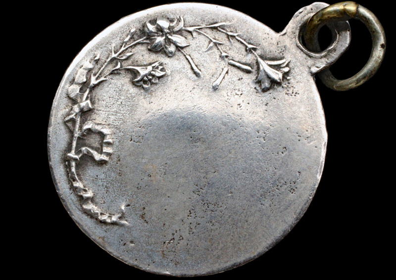 第一次大戦期、すなわち 1914年から 1918年頃に制作されたメダイ。マルグリット=マリは教皇ベネディクトゥス15世によって 1920年に列聖されますが、本品はそれよりも以前に制作されたゆえに、マルグリット=マリに後光が彫られていません。