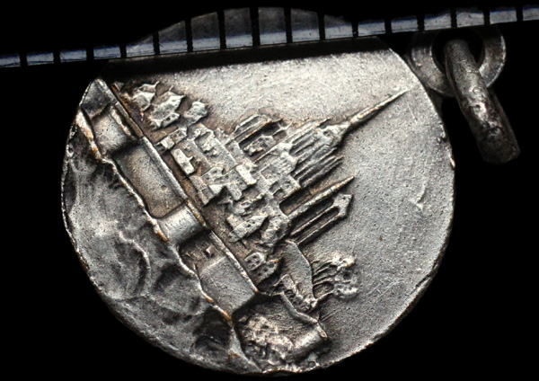 もう一方の面にはモン=サン=ミシェル修道院(L'abbaye Mont-Saint-Michel)の全景が彫られています。写真では分かりづらいですが、この面の浮き彫りはダイナミックな凹凸によって優れた三次元性を有し、小さなサイズを超えた臨場感があります。