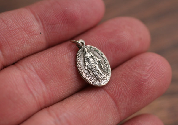 フランスにとって明るく豊かな時代であった 1920年代あるいは30年代頃に製作された「不思議のメダイ」。縦2センチメートル足らず、横1センチメートルあまりと小さめのサイズは、チョーカーのペンダントトップにぴったりです。