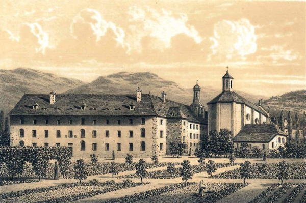 (下) アヌシーの聖母訪問会修道院 1870年頃の様子。ルイ・ジュリアン・ブレリオ神父の石版画。