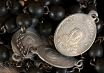 聖母のしもべ会 七つの悲しみの聖母のシャプレ アルミニウム製メダイユに黒い木製ビーズ 全長 47.5 cm イタリアまたはフランス 十九世紀末頃